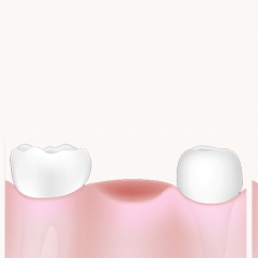 失った歯の両隣の歯を円筒状に削り歯がないところも含めた人工の歯を装着します。